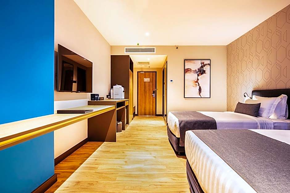 Suitable for 2 people, this modern twin room is air conditioned. A flat-screen TV and a mini-bar are available.